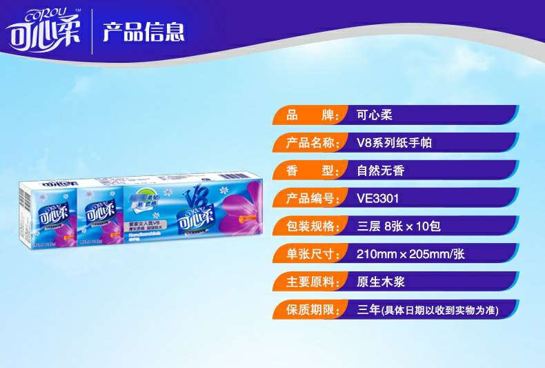 可心柔 V8系列CoRou云柔系列白色木浆60抽